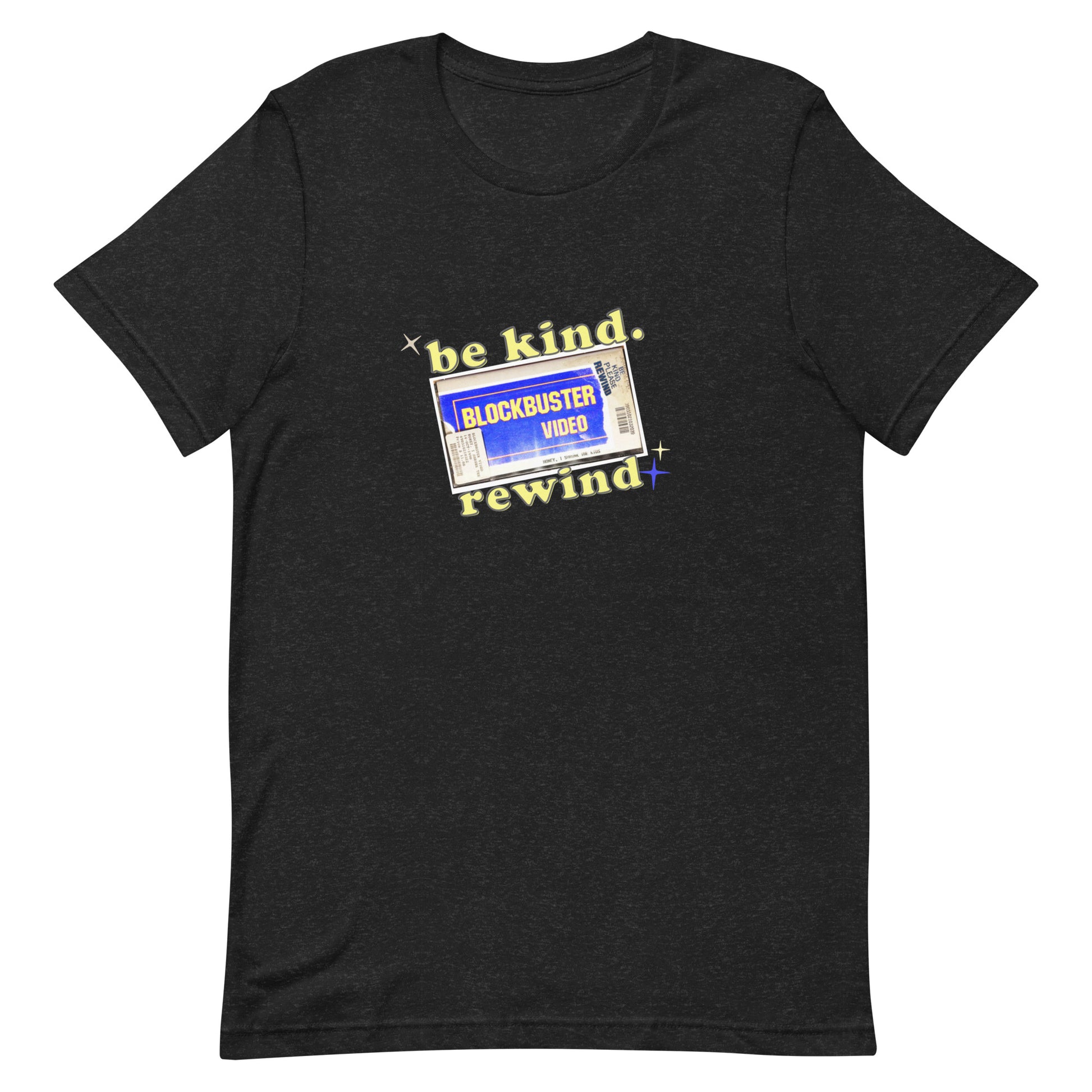 The Blockbuster Be Kind Rewind T-Shirt is the perfect addition to any movie lover's wardrobe. This hoodie features the iconic Blockbuster logo and the classic "Be Kind Rewind" slogan, reminding us of the good old days of VHS rentals. Available in cream, black and blue, this tee comes in a range of sizes to fit any body type. Show off your love for the golden age of videos with the Blockbuster shirt.